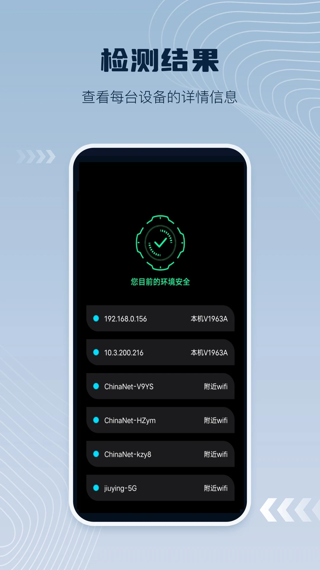 鹰眼扫描采用多重反偷拍技术,结合了设备特征识别、网络扫描和光学检测等多种手段,大大提高了检测的准确性和可靠性。无论是出差在外的商务人士,还是喜欢旅游的背包客,亦或是需要频繁更换住所的租房族,这款软件都能成为您保护隐私的得力助手。其轻量化的设计不会占用过多手机资源,随时随地都能快速启动使用,让您在任何环境中都能安心享受私人空间。