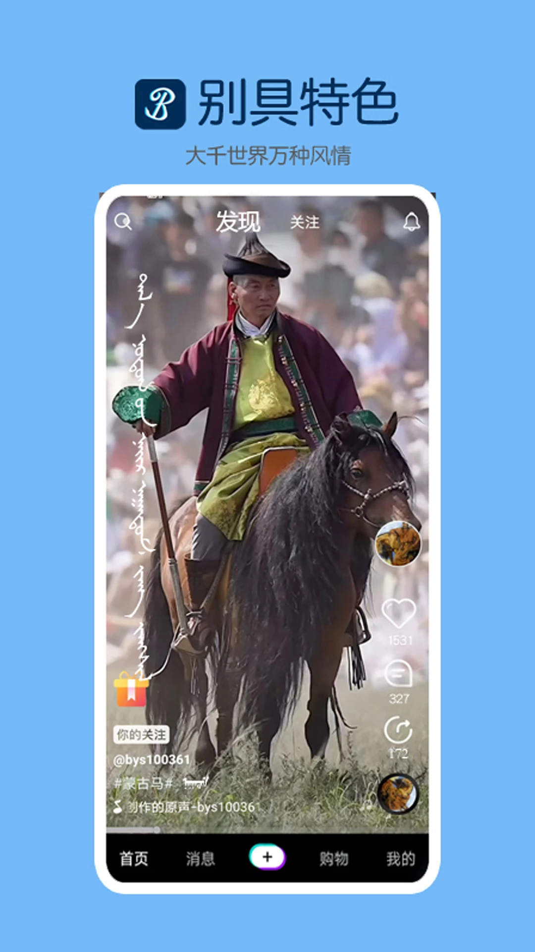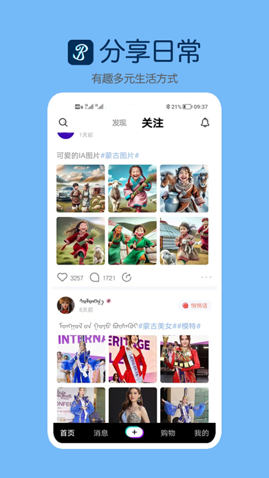 巴音桑是一款充满蒙古风情的多元平台,致力于为用户带来丰富多彩的生活体验。在这里,你可以记录美好瞬间,探索大千世界的万种风情,感受中华民族的独特文化魅力。无论是蒙古族的传统歌舞、悠扬的草原音乐,还是激动人心的那达慕盛会,都能让你沉浸其中。平台汇聚了各种有趣的内容,从好看的、好玩的到好笑的,应有尽有。此外,你还能欣赏到各类才艺展示和绝活表演,让你刷个不停,乐在其中。