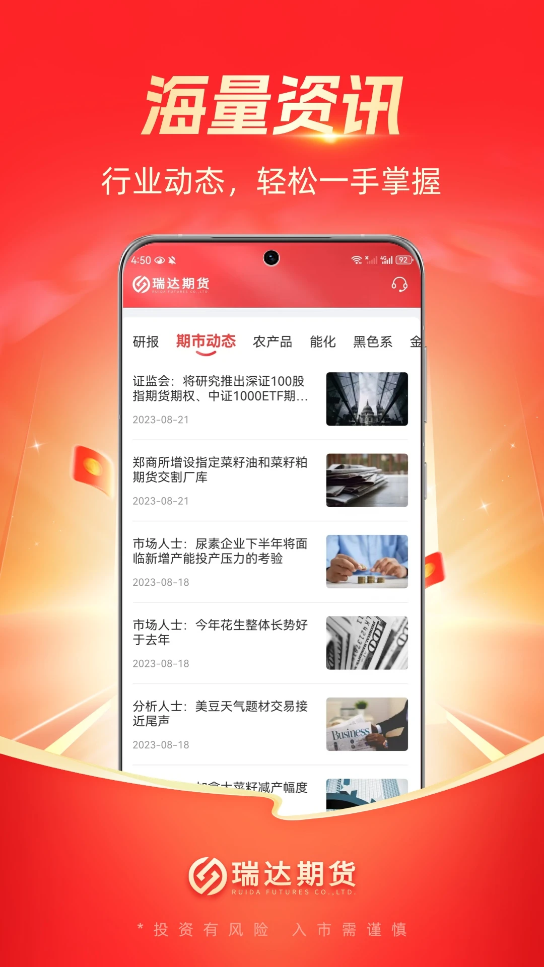 瑞达期货通app是一款功能全面、服务专业的期货投资理财软件,为用户提供从开户交易到行情资讯的一站式投资体验。作为国内领先的期货投资平台,瑞达期货通app致力于满足不同投资者的多样化需求,无论是初入市场的新手还是经验丰富的专业人士,都能在这里找到适合自己的投资工具和服务。