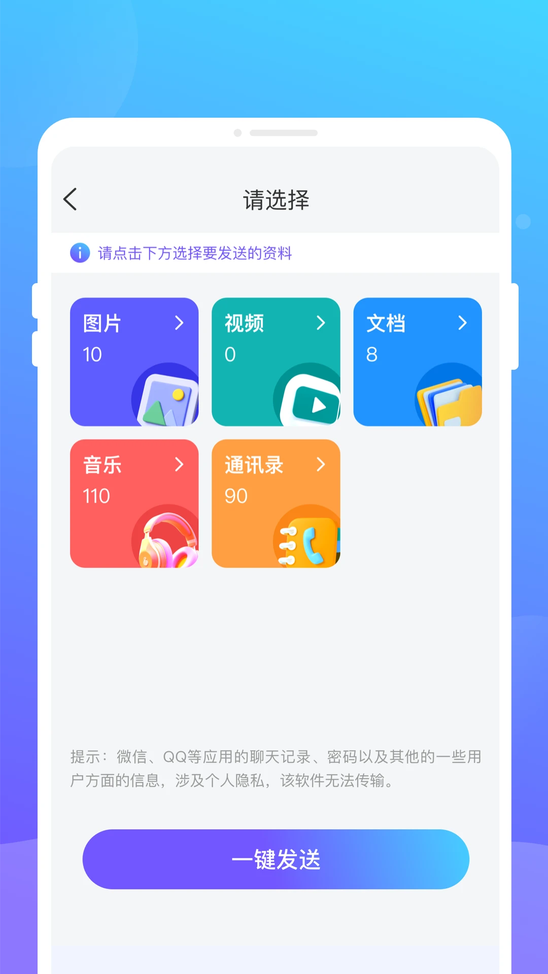 这是一款专为手机用户设计的数据传输软件,能够帮助用户在更换手机或需要数据迁移时快速完成传输任务。无论您是从旧手机换到新手机,还是需要在不同设备间共享重要数据,这款软件都能提供高效稳定的传输体验,让数据迁移变得前所未有的轻松便捷。