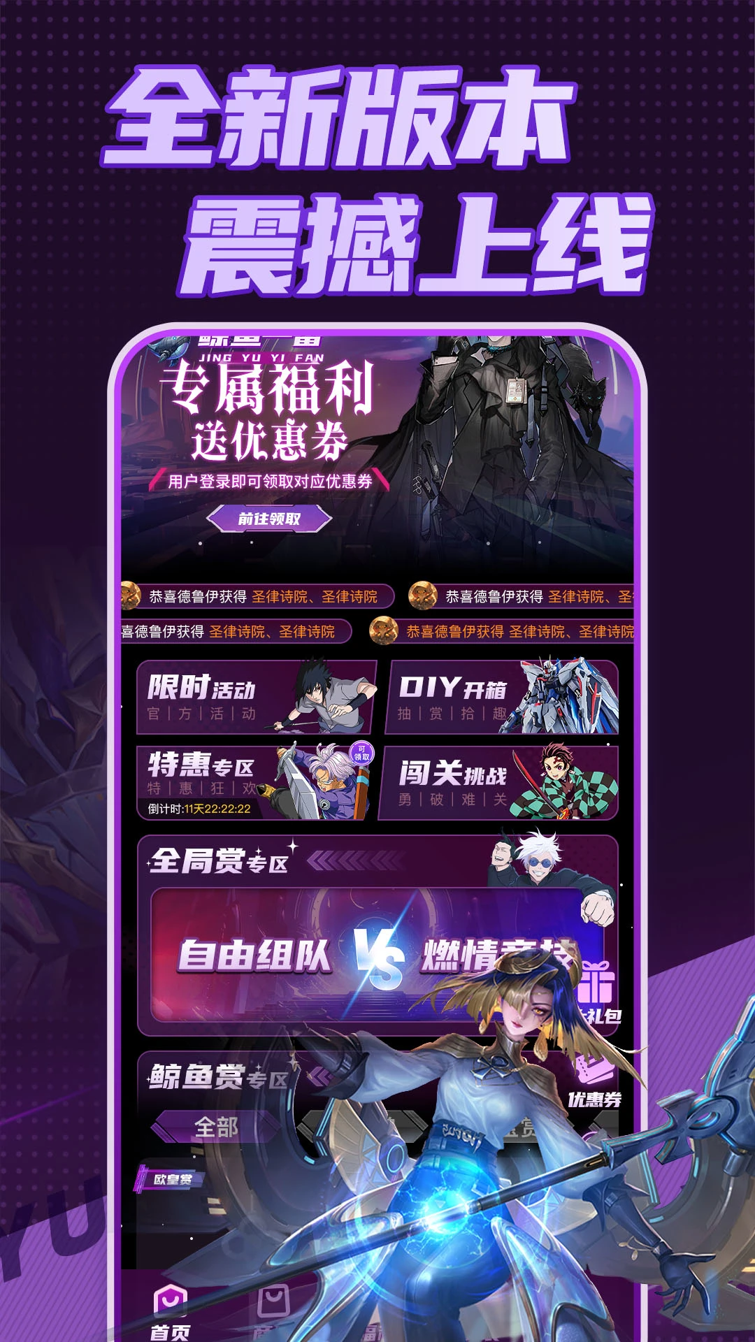 鲸鱼一番是一个专注于二次元潮流文化的综合平台,汇聚了海量正版模玩、手办、卡牌及一番赏等热门商品,同时为用户提供最新最全的游戏动漫IP周边资讯和便捷的电商交易服务。在这里,你可以找到来自全球各地的限量版潮玩,无论是经典动漫角色手办、热门游戏联名周边,还是极具收藏价值的卡牌和一番赏奖品,都能满足不同收藏爱好者的需求。