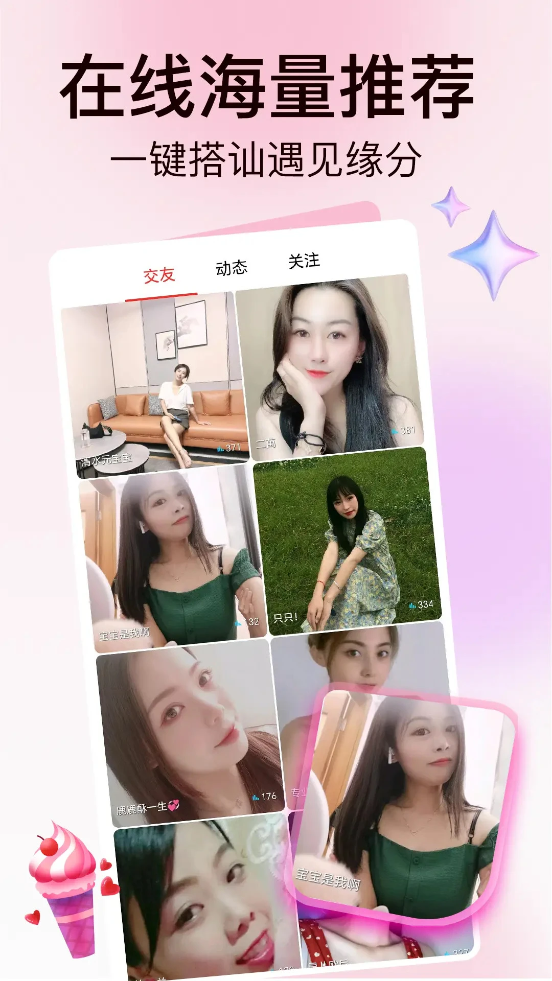 麦撩视频交友提供了丰富多样的互动方式,让你与陌生人之间的交流更加生动有趣。通过一对一交友功能,你可以选择视频、语音或文字等多种形式与对方实时沟通,畅所欲言地表达自己。视频速配功能则能帮你快速找到志同道合的伙伴,只与最合适的人聊天,让社交体验更加真实直接。此外,平台还设有直播互动专区,众多颜值与才华并存的小姐姐和暖男主播在这里等待与你相遇,你可以通过弹幕、点赞等方式与他们实时互动,感受不一样的社交乐趣。