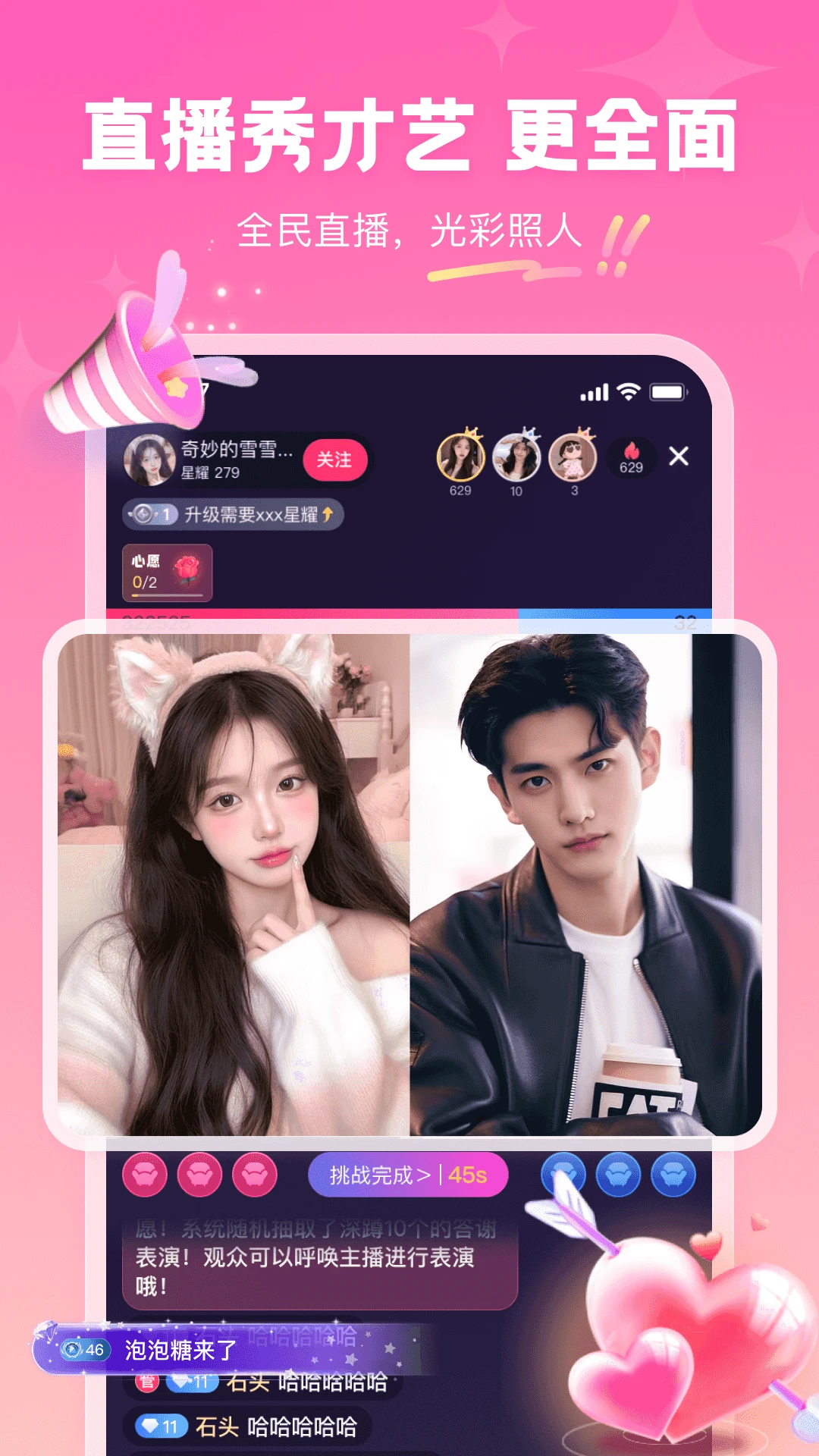 【直播娱乐】零门槛开播,美颜特效,弹幕礼物实时互动。内置专业级美颜滤镜和丰富特效道具,让每位用户都能展现最自信的一面。观众可以通过弹幕、礼物等多种方式与主播互动,打造沉浸式的娱乐体验。平台定期举办主题活动,为用户提供展示才华的舞台。
