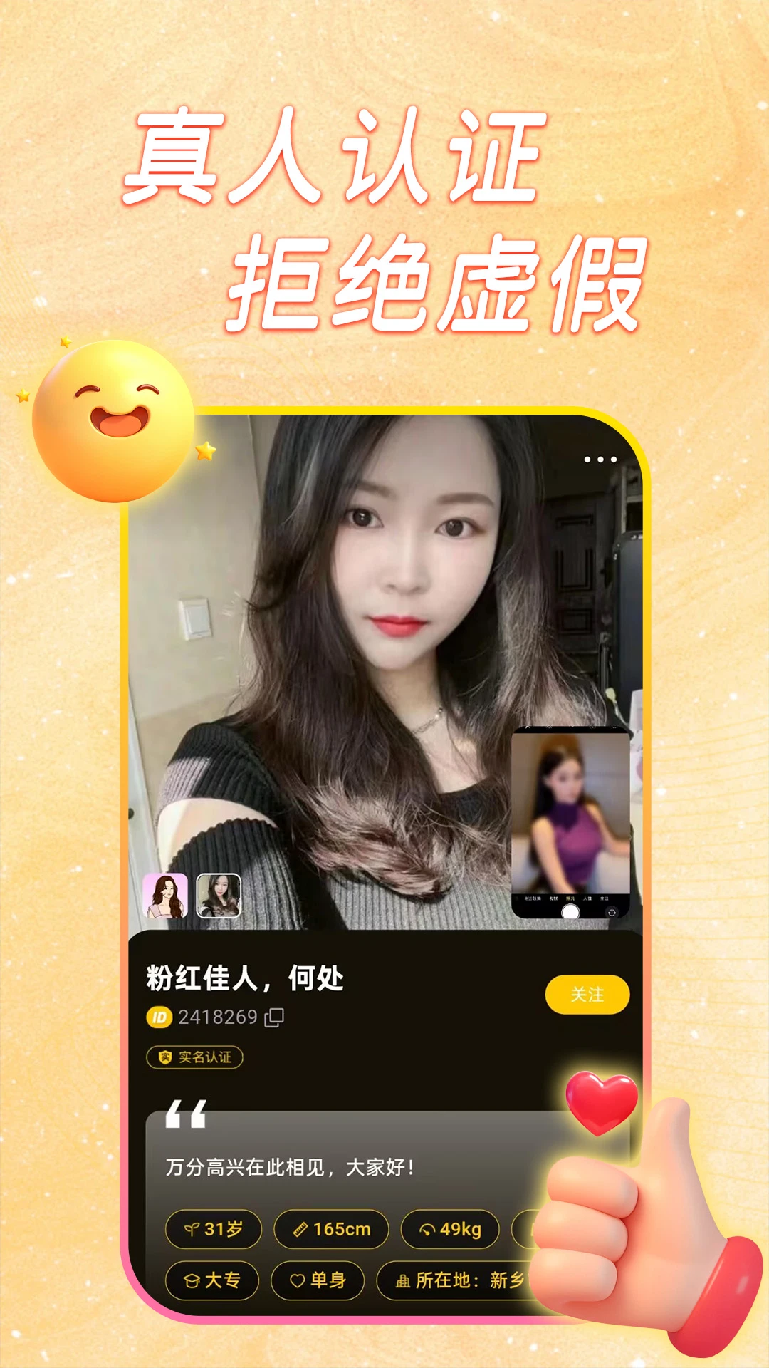 在霓虹闪烁的夜晚,孤独感常常悄然而至,我们渴望一个能够安放真心、分享情感的温暖角落。平台致力于打造一个安全、真诚的社交空间,通过智能匹配技术为你牵线搭桥,让你轻松遇见志同道合的伙伴。我们采用严格的真人认证机制,确保每一位用户都带着真实与诚意而来,为你的社交之旅保驾护航。