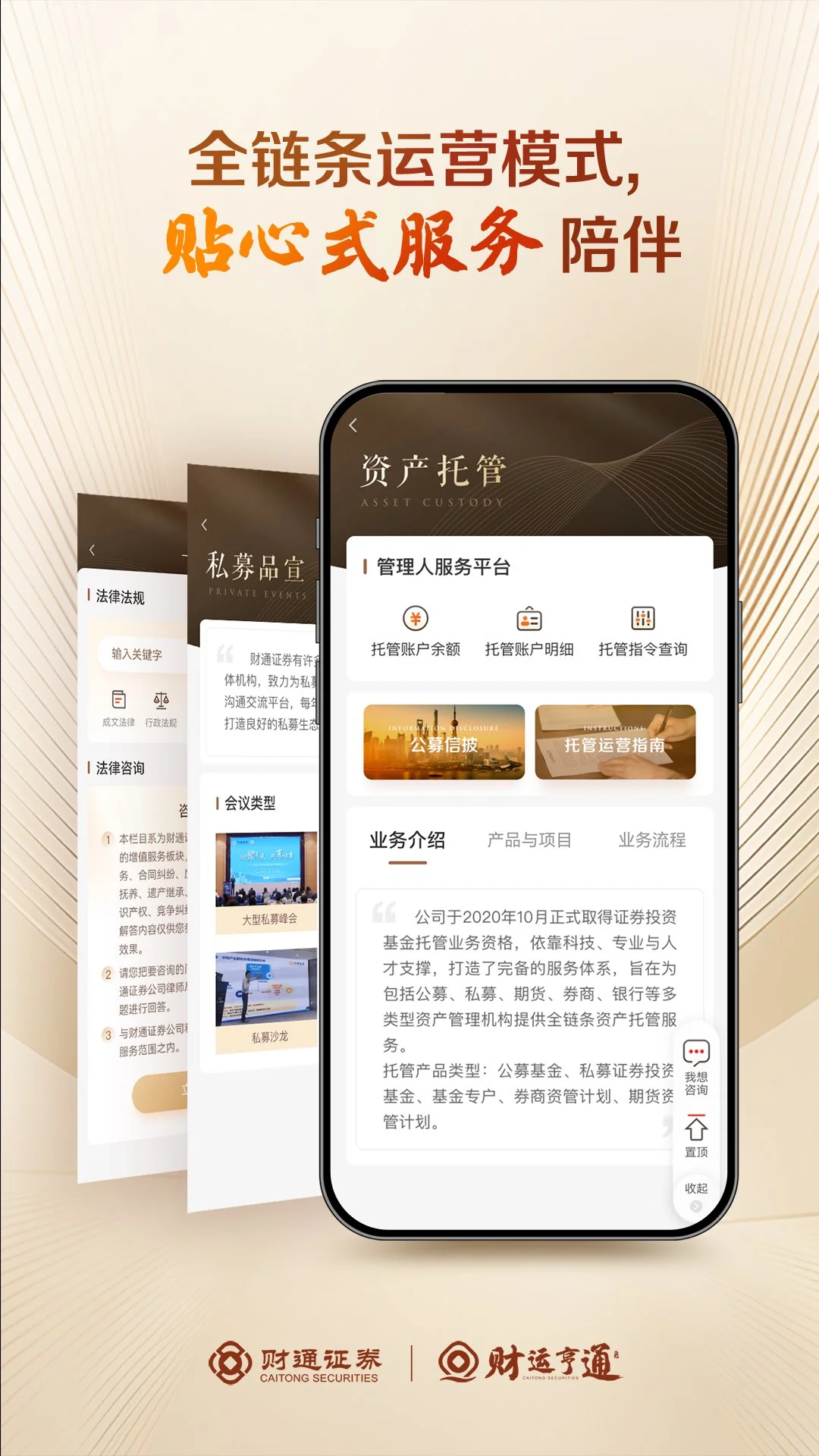 财运亨通APP是财通证券专为企业和机构投资者精心打造的一站式综合金融服务平台。该平台依托财通证券强大的金融资源与专业能力,致力于整合集团旗下各业务条线及子公司的核心服务资源与特色服务能力,围绕客户在资本市场中的多元化需求,构建了覆盖研究、投行、投资、股份管理等全业务链条的金融服务体系,同时提供多项特色金融工具,打造开放共享的业务生态圈,为客户提供更加便捷、专业且多元化的综合金融服务解决方案。