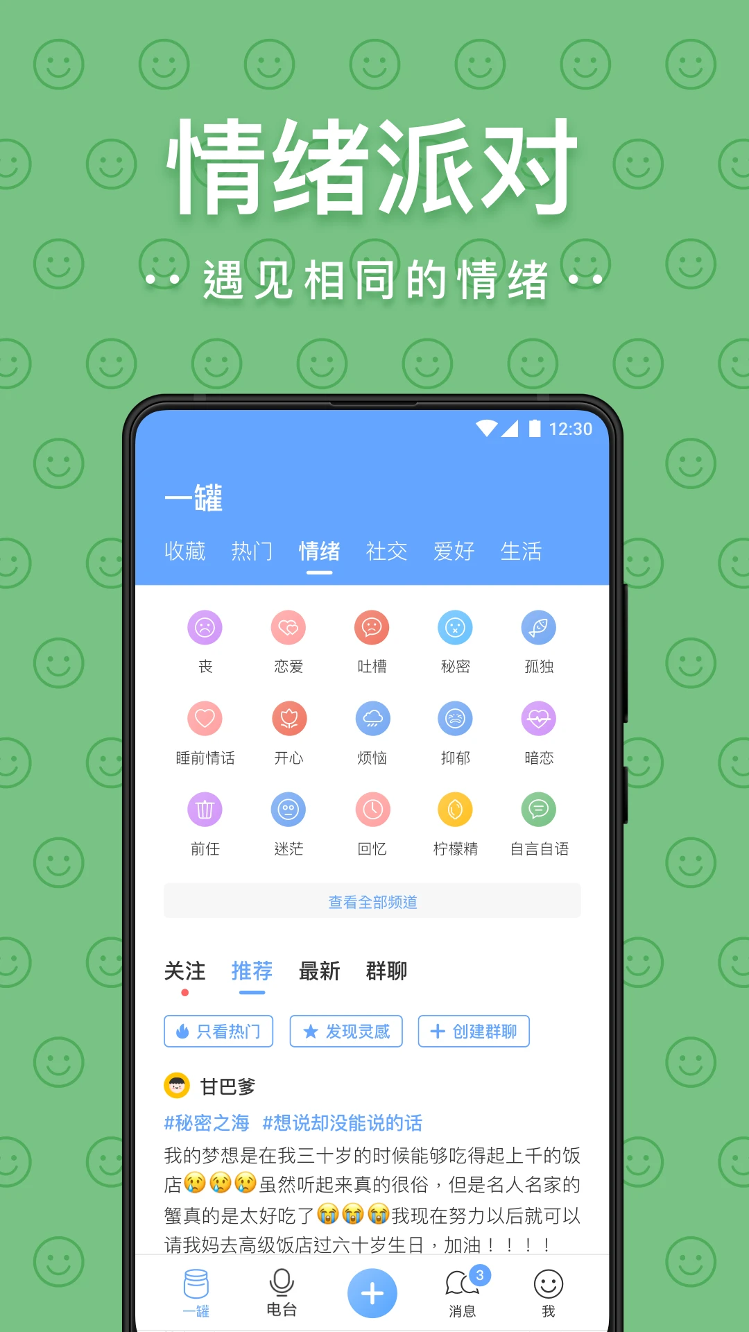荣获小米应用商店金米奖的一罐APP,是一款专为社交恐惧人群打造的温暖社交平台。在这里,你可以卸下所有伪装,展现最真实的自我。