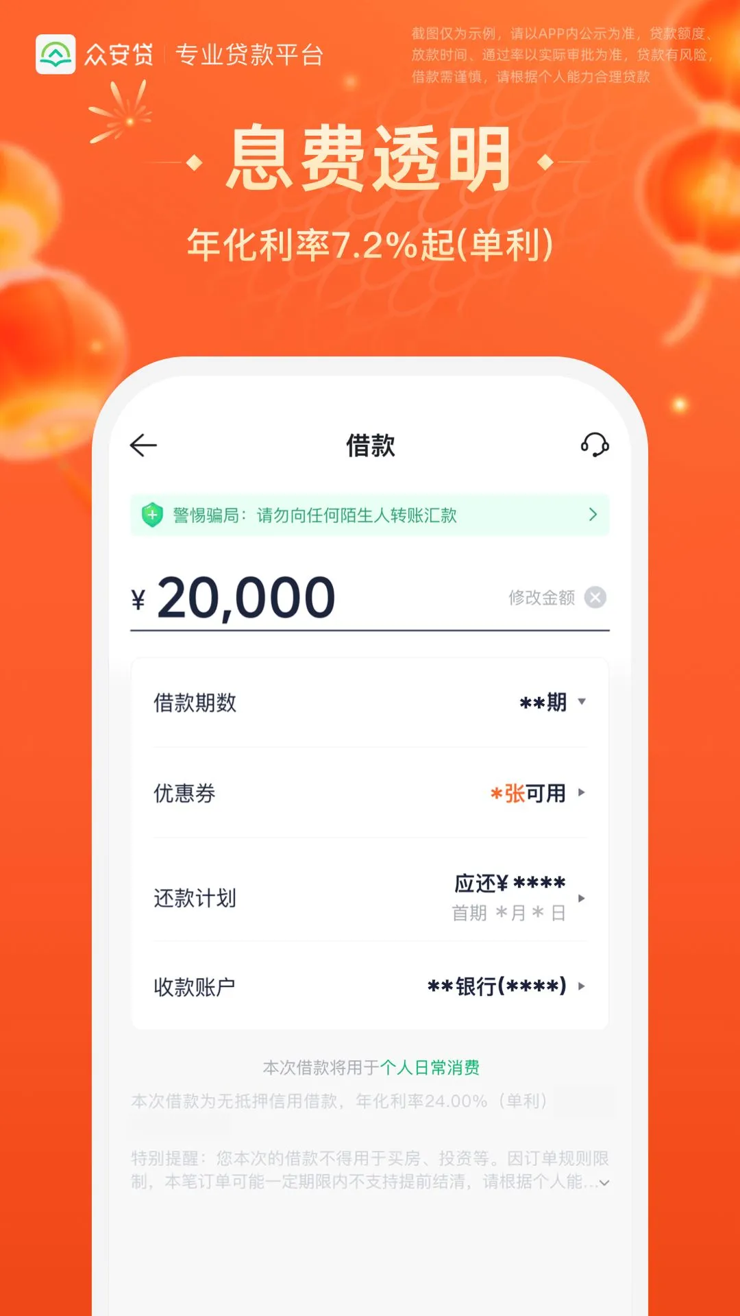 安全借款:众安贷采用银行级数据加密技术,全程保护您的个人信息安全。从申请到还款的每个环节都经过严格的安全防护,确保您的资金和信息安全无忧。