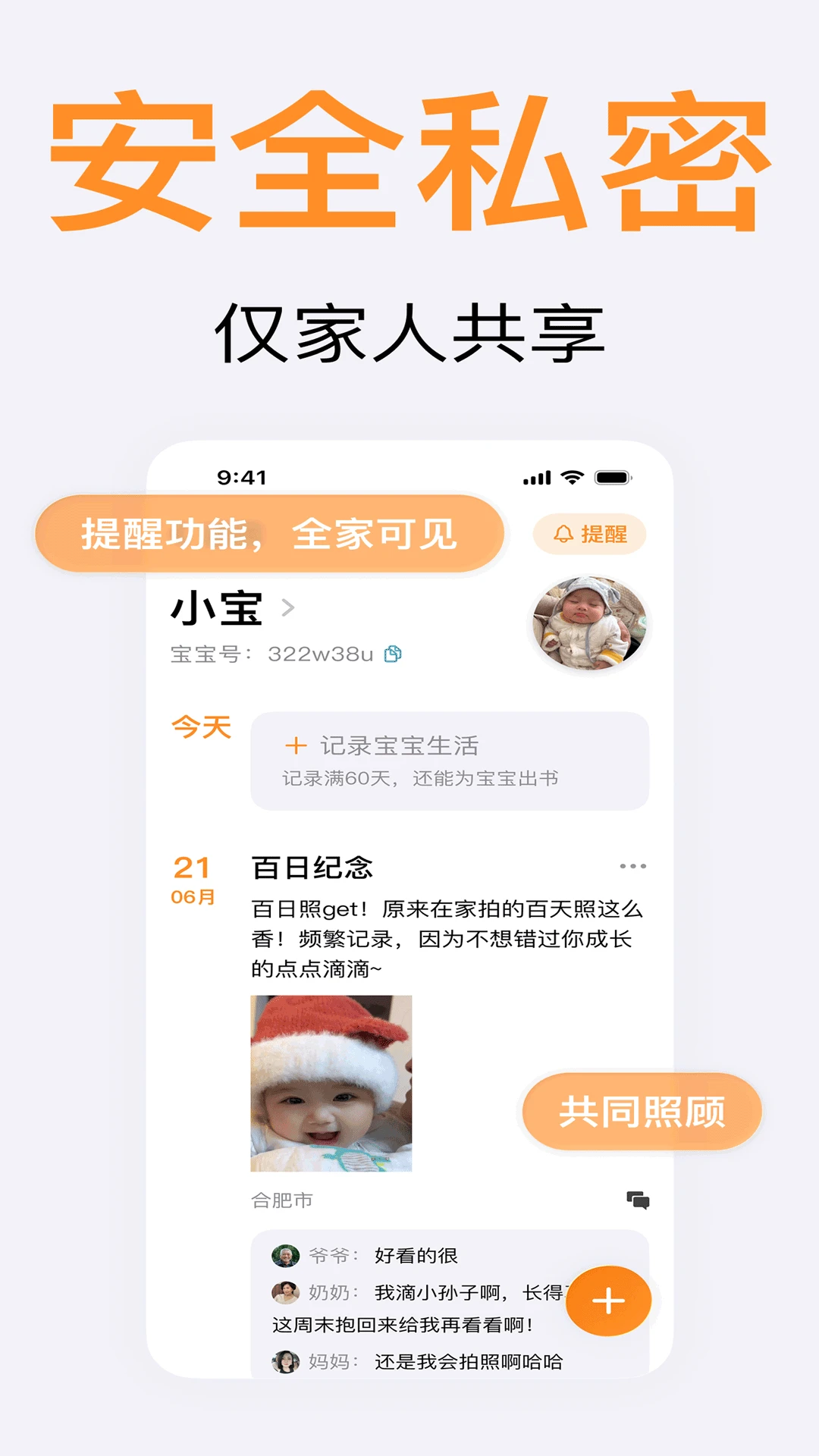 全家一起照看宝宝,给与宝宝无微不至的照顾,宝宝的事,一件也不会忘记,超实用。通过智能提醒功能,您可以设置重要的日程和事件,如疫苗接种时间、体检提醒等,确保不会错过任何关键节点。同时,家人之间可以同步提醒内容,共同参与宝宝的成长过程,让关爱无处不在。