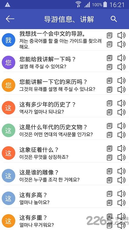 中韩翻译软件内置丰富的常用语料库,涵盖交通、住宿、餐饮、购物等八大生活场景,每个场景都配有标准的中韩双语发音示范。用户可以通过情景式学习快速掌握实用表达,所有语句均支持语音播放和文字复制功能。特别设计的"我的收藏"功能让用户能随时保存常用短语,配合智能搜索功能,3秒内就能找到需要的表达方式。软件还提供发音速度调节功能,帮助用户更好地模仿地道发音。