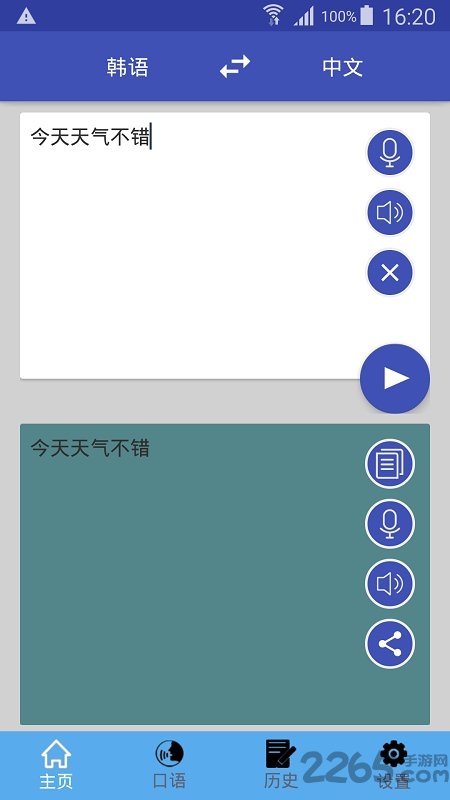 中韩翻译是一款专为中韩语言交流设计的智能翻译工具,无论您是去韩国旅游、购物还是日常交流,都能轻松应对语言障碍。软件不仅提供精准的文本互译功能,还支持实时语音翻译,让沟通更加便捷高效。用户可自由复制翻译内容并分享给朋友,更有多种个性化主题界面供选择,满足不同审美需求。界面简洁友好,操作流畅,是您学习韩语、商务洽谈或出国旅行的得力助手。