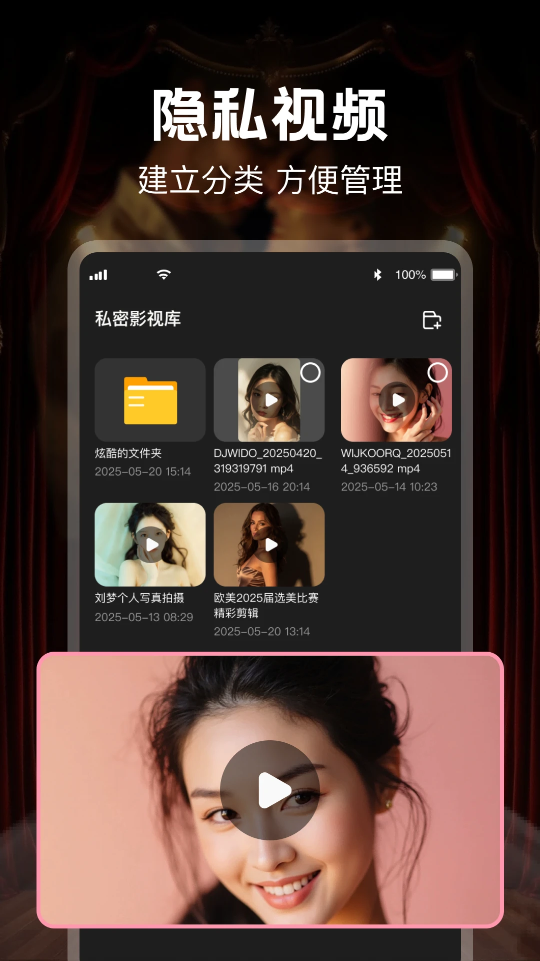 蜜桃隐私播放器采用先进的加密算法,所有存储在应用内的文件都经过严格加密处理,即使手机丢失或被盗,他人也无法获取您的隐私内容。我们深知隐私保护的重要性,因此不断优化产品功能,致力于为您打造最安全可靠的私人观影空间。