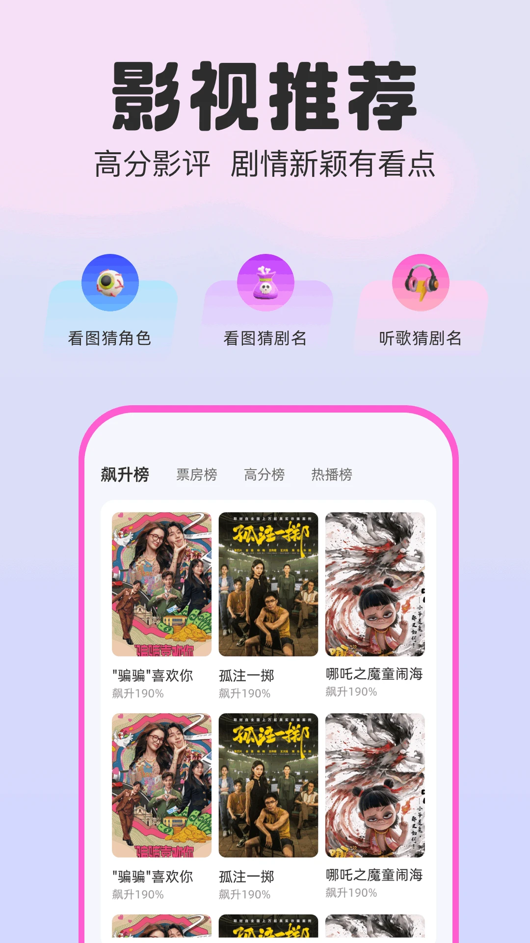 剧兔的趣味互动功能为影视爱好者提供了多种娱乐方式,包括看图猜角色、听台词或歌曲片段猜剧名等小游戏。这些互动挑战不仅能测试你的影视知识储备,还能让你在轻松愉快的氛围中重温经典场景。无论是与朋友比拼识剧能力,还是独自挑战高分纪录,都能在游戏中感受到影视文化的魅力,让追剧不再只是被动观看,而是充满参与感的体验。