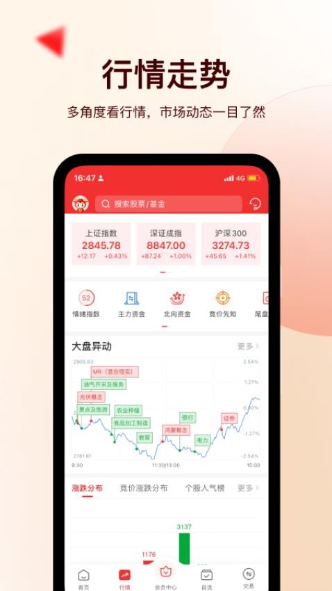 行情页面采用机构级图表引擎,支持MACD、KDJ等30余种技术指标自定义。提供筹码分布、主力持仓等特色数据可视化,一键生成多周期共振分析报告。