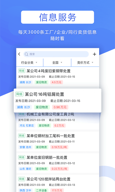 多平台一键登录功能支持微信、支付宝等主流账号体系,3秒即可完成注册。信息平台整合了全国300多个城市的回收资源,每日更新上万条求购信息。发布板块支持图文、视频等多种形式,可详细展示商品状况。项目详情页包含完整的交易记录、用户评价和资质认证信息,让您对每个项目都了如指掌。新增的在线客服系统7×24小时为您解答各类问题。