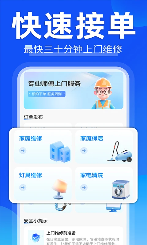 家庭维修服务为您提供专业的水电、家居一站式维修解决方案。通过便捷的手机应用,用户可以轻松下单,享受快速上门服务。我们拥有经验丰富的专业维修团队,覆盖全国多个主要城市,确保您随时随地都能获得及时可靠的维修服务。系统支持自主报价和灵活选单功能,让您能够根据自身需求选择最合适的服务方案。无论是水管漏水、电路故障还是家具维修,我们都能为您提供高效、专业的解决方案,彻底解决您的居家维修难题。