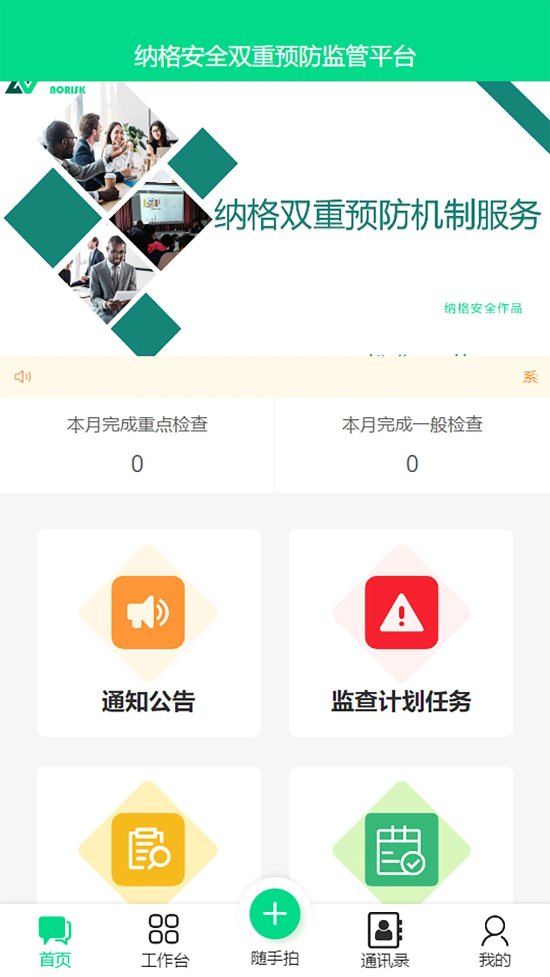 纳格安全双预防云平台APP是一款专为企业安全生产监管设计的智能工具,能够帮助监管部门高效掌握企业安全动态。通过该平台,监管部门可以实时获取企业使用情况、点检频率、隐患整改进度以及教育培训合格率等关键数据,并以直观的图表形式展示,大幅提升监管效率。该应用作为双重预防监管端,与纳格安全双预防云平台APP配套使用,为企业安全生产提供全方位的数字化支持,减少线下检查的负担,实现精准化、智能化的安全监管。
