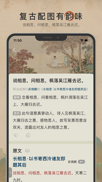 古诗文网app是古诗文网官方推出的手机客户端应用,作为国内领先的古诗文学习平台,古诗文网自2011年成立以来一直致力于中华经典文化的传承与推广。这款app延续了网站的专业性和权威性,为古诗文爱好者打造了一个集学习、欣赏、研究于一体的移动端平台。