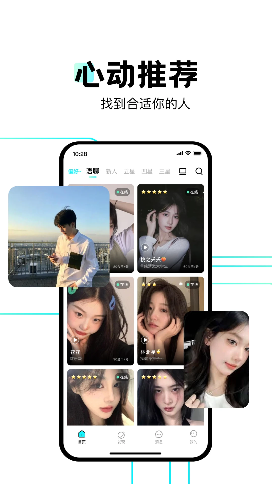 FU星遇是一款以兴趣为主导的高颜值社交平台,致力于为年轻人打造一个真实、有趣、充满活力的交友空间。在这里,您可以遇见来自全国各地的帅哥美女,通过共同的兴趣爱好建立深厚的情感连接。无论是寻找志同道合的朋友、探索新鲜话题,还是邂逅浪漫缘分,FU星遇都能为您提供最贴心的社交体验。