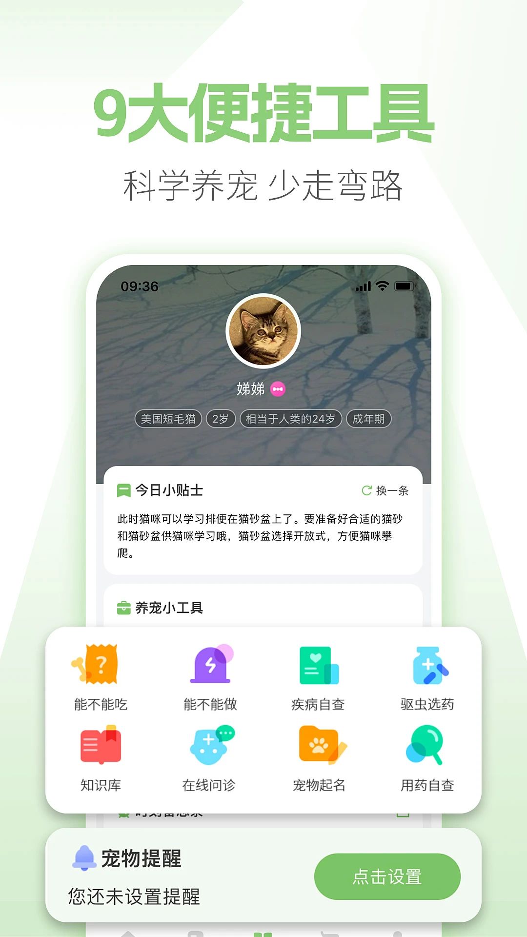 ◆养宠工具:平台创新研发8大智能养宠工具,其中在线问诊服务由持证兽医师24小时值守。用户可通过图文、视频等多种方式咨询,获得专业可靠的养宠建议。知识库持续更新最新养宠研究成果,帮助用户掌握科学喂养方法。