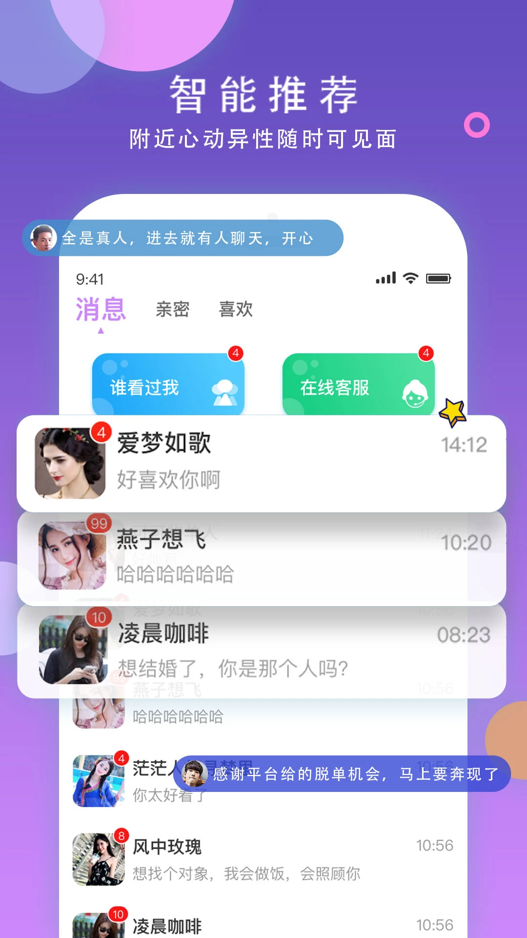 精准的LBS定位技术帮你发现附近的有缘人,从线上互动到线下约会无缝衔接。平台提供安全可靠的面基功能,支持双方共同确认见面意向。让虚拟的缘分转化为现实的相遇,开启一段真实美好的感情故事。
