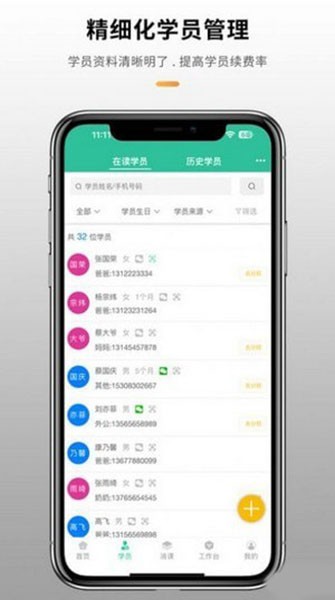拥有正式学员的所有信息,能够管理正式学员的状态,包括学习进度、出勤记录等详细数据