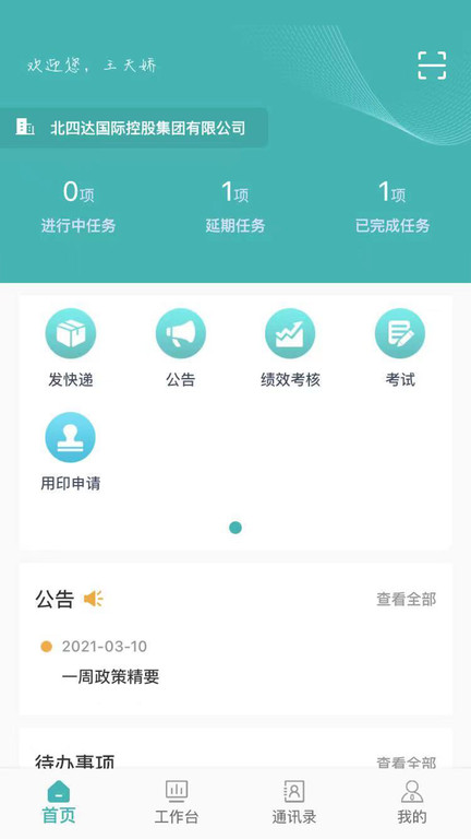 设计企业管理信息系统app还为用户提供了发快递、绩效考核、考试、用印申请等功能,包括各类的实时消息通知,用户也可以在公告中进行查看。所有功能都经过精心设计,确保操作流程简单直观。