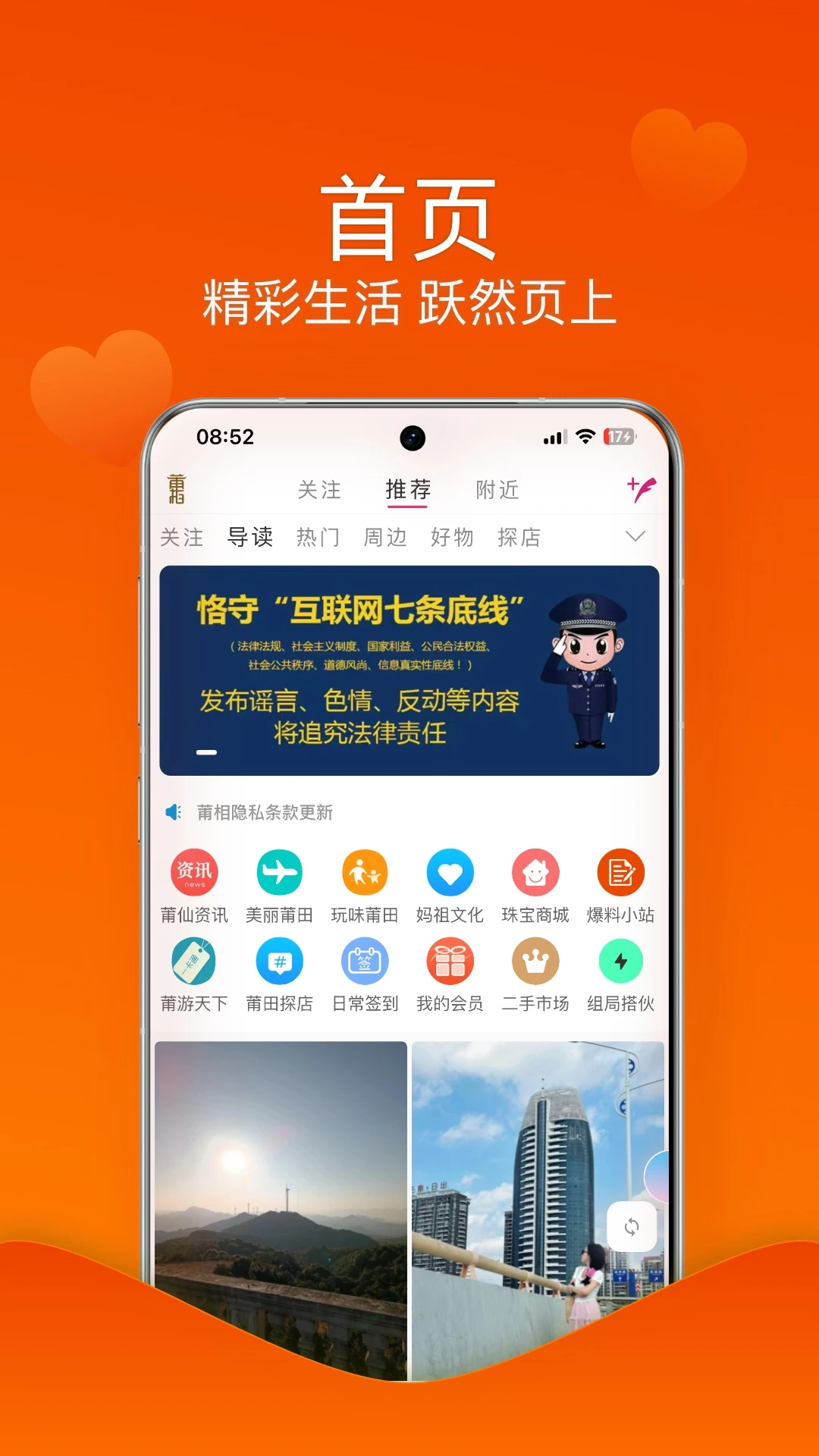 最新版本的莆相APP带来了更流畅的操作体验和更丰富的功能模块。我们深入挖掘莆田本地生活需求,新增了智能消费推荐系统和活动报名功能。现在,用户不仅能获取全面的消费经验分享,还能通过个性化推送第一时间掌握莆田各大商圈的优惠活动。平台还优化了内容发布流程,让分享生活变得更加简单快捷,真正实现"一键了解莆田事"的便捷体验。
