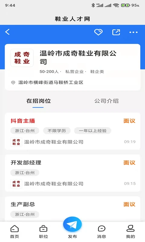 平台提供iOS和Android双版本APP,操作简单便捷。无论您是企业HR还是求职者,都可以随时随地使用我们的服务。新用户注册即可获得专属优惠和增值服务,期待为您提供专业、高效的鞋业人才服务体验。