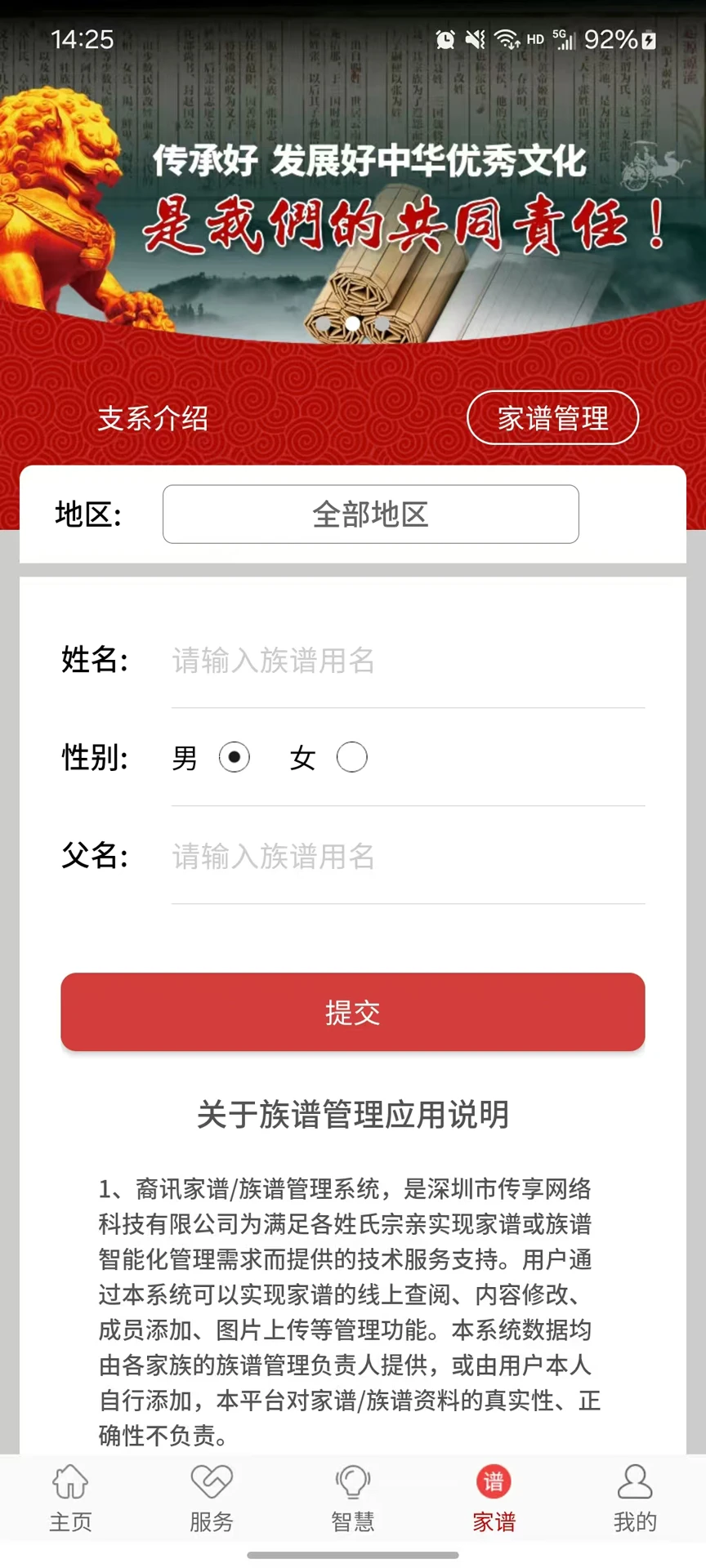 今日裔讯APP是一款致力于弘扬中华优秀传统文化的综合创新型文化信息服务平台。该平台以深厚的家国情怀为精神纽带,通过数字化手段将传统家族文化与现代科技完美融合,为用户提供全方位的文化服务体验。