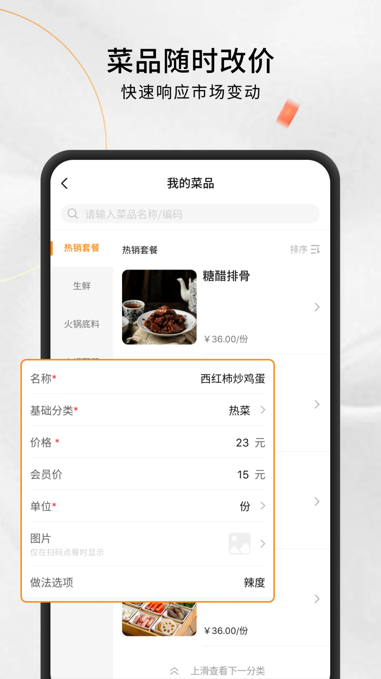 在菜品管理方面,系统支持菜品的添加、修改、下架等操作,同时提供智能分类和标签功能,方便用户根据季节变化或经营需求快速调整菜单。数据报表功能可自动生成日/周/月营收报表,支持多维度数据分析,包括菜品销量排行、顾客消费习惯等,帮助经营者做出更科学的经营决策。