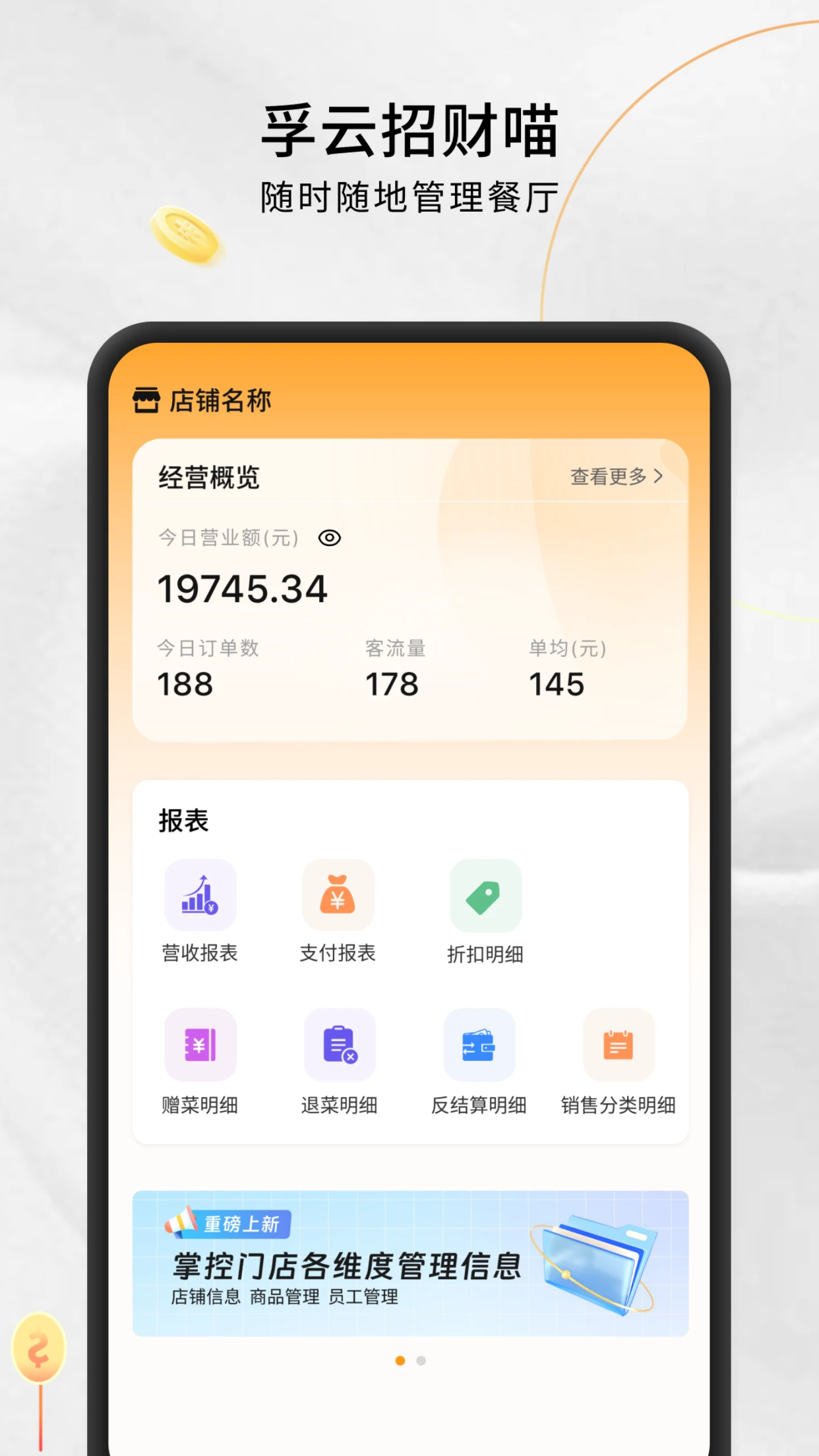 该软件是一款专为餐饮行业打造的全方位门店管理工具,其核心功能涵盖菜品管理、数据报表、门店管理和店员管理等四大模块。通过智能化管理系统,用户能够轻松实现对餐饮门店各项事务的精准把控。