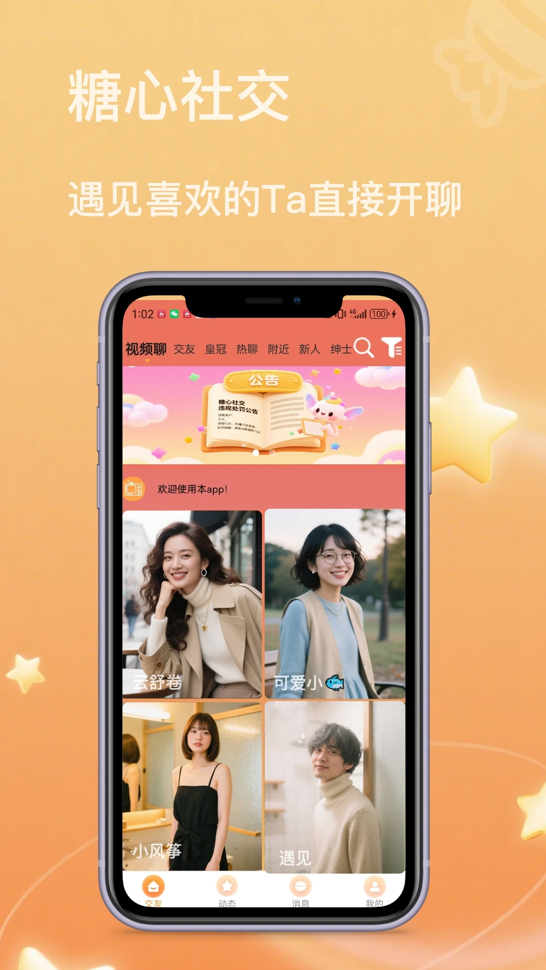糖心社交采用先进的智能算法,能够根据你的兴趣爱好、生活习惯等多维度数据,为你精准推荐最合适的交友对象。无论是喜欢音乐、电影、运动还是美食,你都能在这里找到志趣相投的朋友。系统还会根据你的日常互动行为不断优化推荐结果,确保每次都能为你带来新鲜有趣的社交体验。此外,平台还设有兴趣小组功能,让你可以加入特定主题的社群,与更多人分享交流。