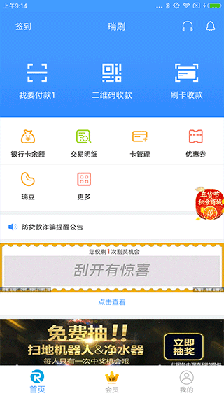 瑞刷官方版集成了多项实用功能,满足用户多样化的金融需求:支持二维码收款和刷卡收款两种收款方式;独创的瑞豆积分系统让用户享受更多优惠;完善的卡管理功能可轻松查询银行卡余额;详细的交易记录查询功能让资金流向一目了然;此外还提供手机充值、流量卡充值、加油卡充值、支付宝充值等便民服务,真正实现了一站式金融生活服务平台。
