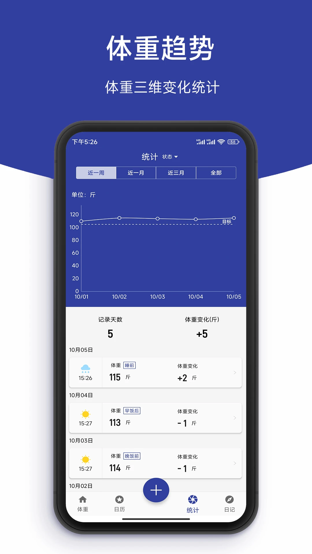 无论您的目标是减脂塑形、增肌健体,还是维持现有体型,记体重本都能成为您最忠实的记录伙伴。我们不仅记录数字,更见证您的每一次努力与进步。通过长期的数据积累,您可以清晰看到身体变化的每一个细节,这些珍贵的记录将成为您健康旅程中最真实的见证。让记体重本陪伴您度过每一个重要的健康时刻,共同见证身体的变化与成长。