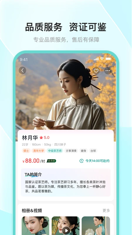 去喝茶平台聚集了一批经验丰富、技艺精湛的茶艺师,他们不仅精通各类茶艺表演,还能为您讲解茶文化知识,带您领略茶道的魅力。用户可以根据茶艺师的专长和风格,灵活选择预约时间,享受一对一的专业服务。无论是想学习泡茶技巧,还是希望在有茶艺师陪伴的氛围中品茶,平台都能满足您的需求。茶艺师们还会根据您的口味偏好,推荐最适合的茶品,让每一次品茶都成为难忘的体验。