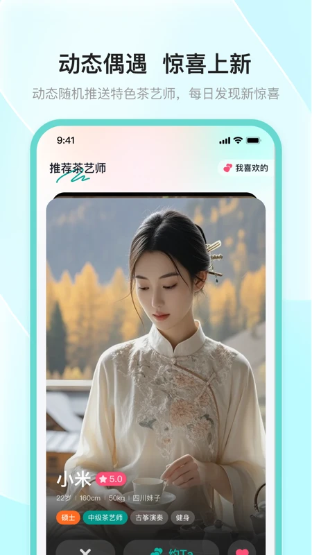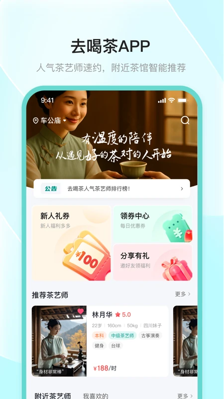 去喝茶是一款专为茶文化爱好者打造的茶馆与茶艺师预约服务平台,致力于为用户提供便捷、高品质的品茶体验。平台汇聚了同城众多优质茶馆和技艺精湛的茶艺师,无论您是想在闲暇时光享受一杯清茶,还是希望学习专业的茶艺知识,都能在这里找到心仪的选择。通过智能匹配和预约功能,用户可以轻松安排时间,随时赴约,感受茶香四溢的美好时光。去喝茶不仅是一个预约工具,更是连接茶文化与现代生活的桥梁,让每一位爱茶人都能享受到最纯粹的茶道乐趣。
