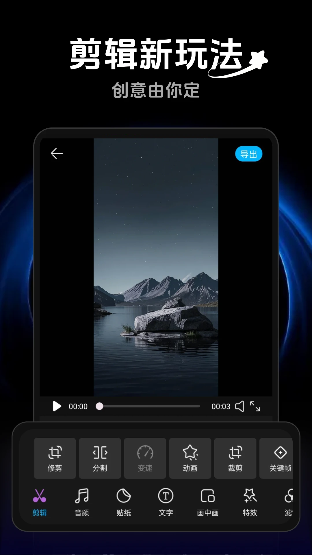 一键完成剪切、拼接、变速、倒放等基础操作,零基础用户也能快速掌握核心功能。多轨道时间轴支持精确到帧的编辑,配合专业级调色工具和音频波形显示,满足影视级创作需求。独创的智能剪辑建议功能,能根据素材内容自动推荐最佳剪辑点,大幅提升工作效率。