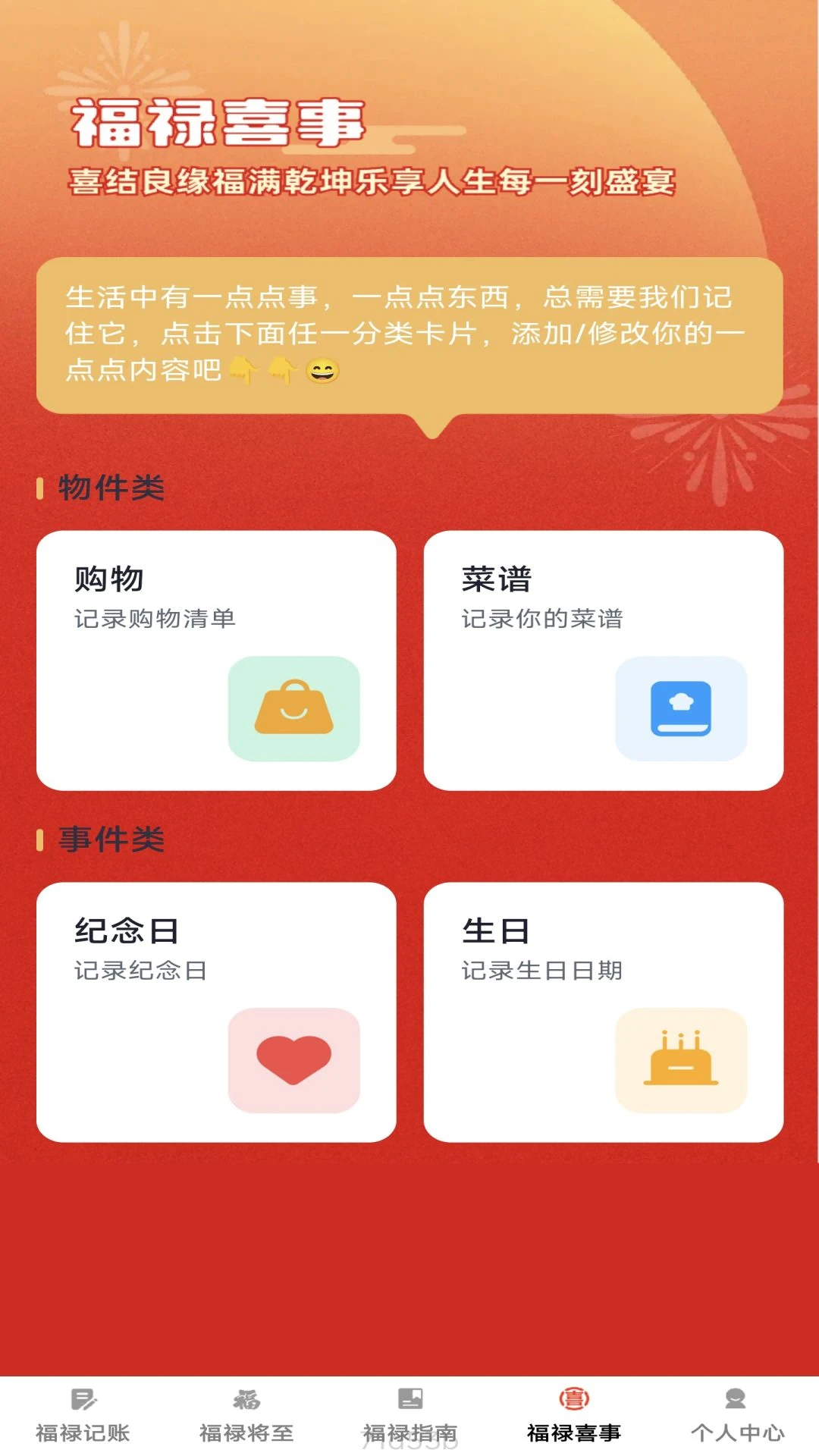 福禄喜事功能则专注于记录生活中的珍贵时刻,无论是生日、纪念日、旅行见闻还是人生重要里程碑,都可以通过文字、图片和视频的形式永久保存。系统提供精美的纪念日模板和智能提醒功能,确保每一个值得庆祝的时刻都不会被遗忘。您还可以与家人朋友分享这些美好回忆,让幸福传递得更远。