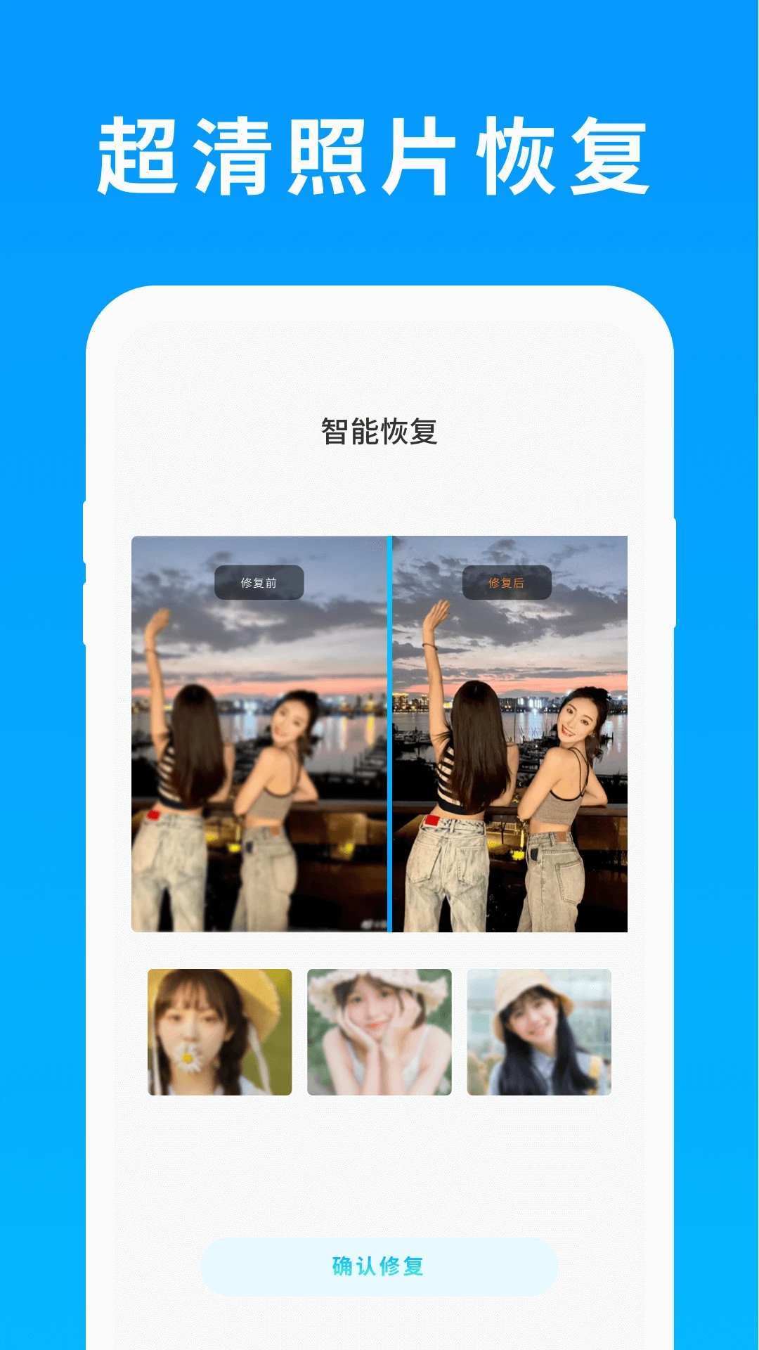 这是一款功能强大的专业照片修复应用,能够帮助用户轻松恢复模糊、损坏或老化的照片。通过先进的AI技术,它可以深度扫描手机内存中的照片,智能修复画质,让珍贵的回忆重新焕发光彩。无论是模糊不清的老照片,还是因存储问题受损的图片,都能通过这款应用得到显著改善。此外,它还提供便捷的相册管理功能,并支持照片上色,让黑白照片重现当年的色彩。操作简单,效果出众,是您手机中不可或缺的照片修复助手。