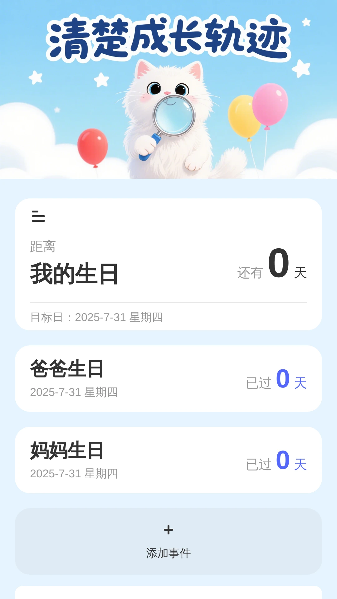 创新的生活记录系统,帮助用户珍藏生命中的重要时刻。不仅可以记录孩子的成长里程碑、家人的生日纪念,还能添加照片、视频和文字备注,打造专属的家庭数字相册。支持时间轴浏览和智能分类,让珍贵回忆随时可查。特别设计的提醒功能,确保不会错过任何一个重要日子,让亲情时刻被铭记。
