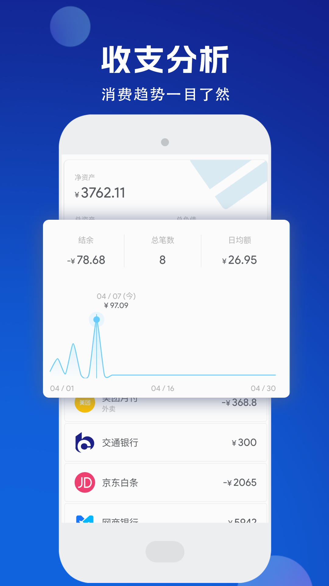 资产趋势功能采用动态曲线图展示您的财务变化,让您随时掌握资产增减的每一个细节。通过设置时间范围,您可以查看特定时期的财务走势,比如对比不同月份的收支情况。系统还会智能预测未来一段时间的财务状况,提前预警可能出现的资金缺口。这个功能特别适合有长期理财规划的用户,帮助您更好地制定储蓄和投资计划。