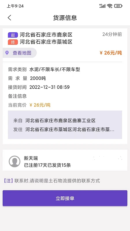 土石物流是物流行业的一款高效实用工具,致力于为货主和车主搭建便捷的沟通桥梁。通过土石物流平台,货主可以轻松在线发布运输需求,车主则能快速匹配并接单,实现双方的高效对接。平台不仅提供海量货源信息,还汇聚了众多优质车主资源,确保货主能够以更低的成本完成运输任务,同时帮助车主获得更多收入机会。