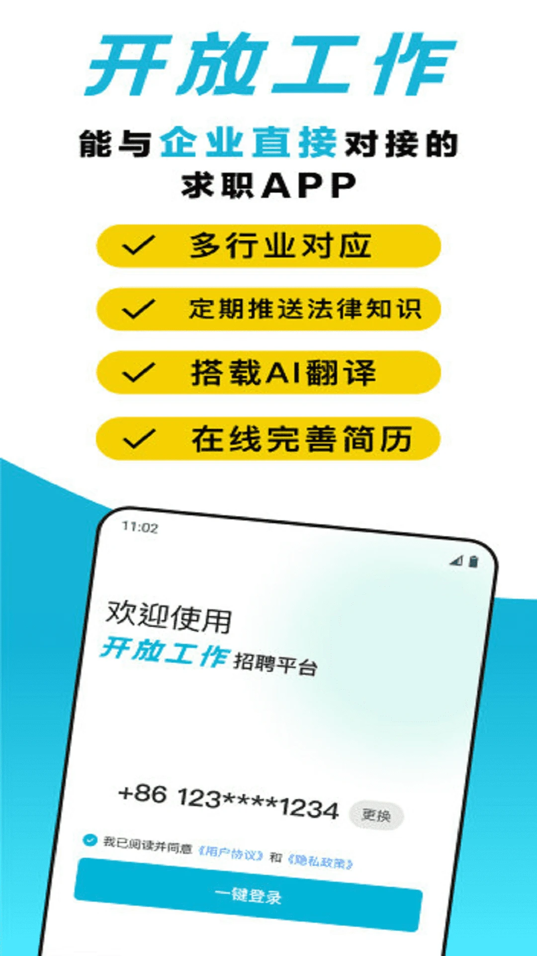 「开放工作」是全球首个专注于日本出国工作的求职类应用程序,致力于为求职者打造一个透明、高效且安全可靠的海外求职平台。该平台采用企业直招模式,省去了传统中介环节,确保求职过程更加公开、直接,同时大幅提升招聘效率。无论是寻找工作机会的求职者,还是急需人才的日本企业,都能在这里找到最合适的匹配。