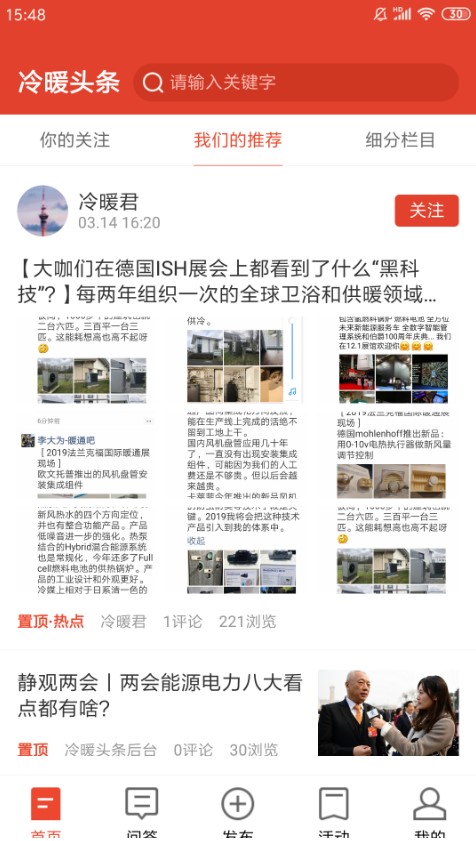 《冷暖头条》拥有行业领先的资讯更新速度,确保用户能够第一时间获取最新鲜的暖通行业动态。平台内容覆盖范围广泛,包括集中供暖系统、地暖安装维护、清洁能源供暖等多个专业领域,满足不同用户的个性化需求。创新的互动问答功能让用户既能提出问题寻求解答,也能分享自己的专业见解帮助他人。每个细分栏目都设有专业的编辑团队,持续产出高质量内容,用户可以对感兴趣的文章进行评论、收藏和分享,与其他爱好者交流心得。