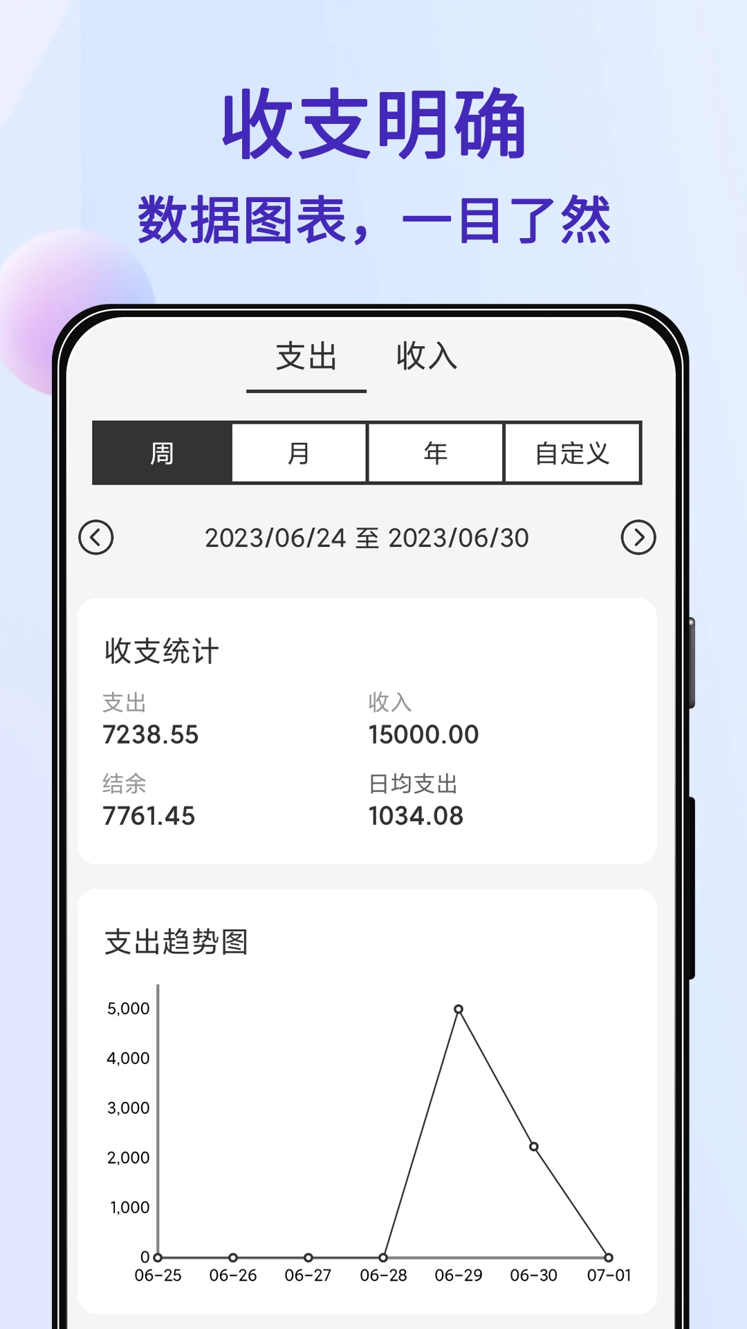 分类预算:可为每个支出类别设置独立预算额度,系统实时显示预算执行进度,当接近预算上限时会自动提醒,有效避免超支情况。