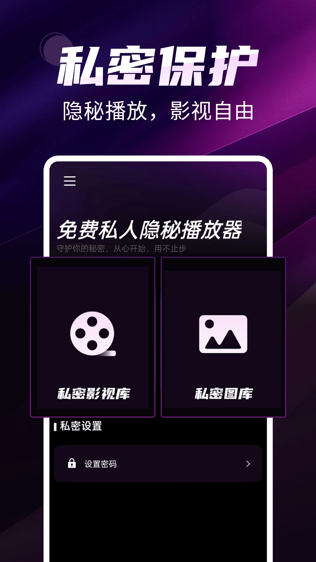 免费私人隐秘播放器是一款专为注重个人隐私的用户设计的全能型媒体管理应用。我们深刻理解现代数字生活中隐私保护的重要性,因此精心打造了这款集安全性与便捷性于一体的播放器,让您能够安心存储和管理珍贵的个人媒体内容。