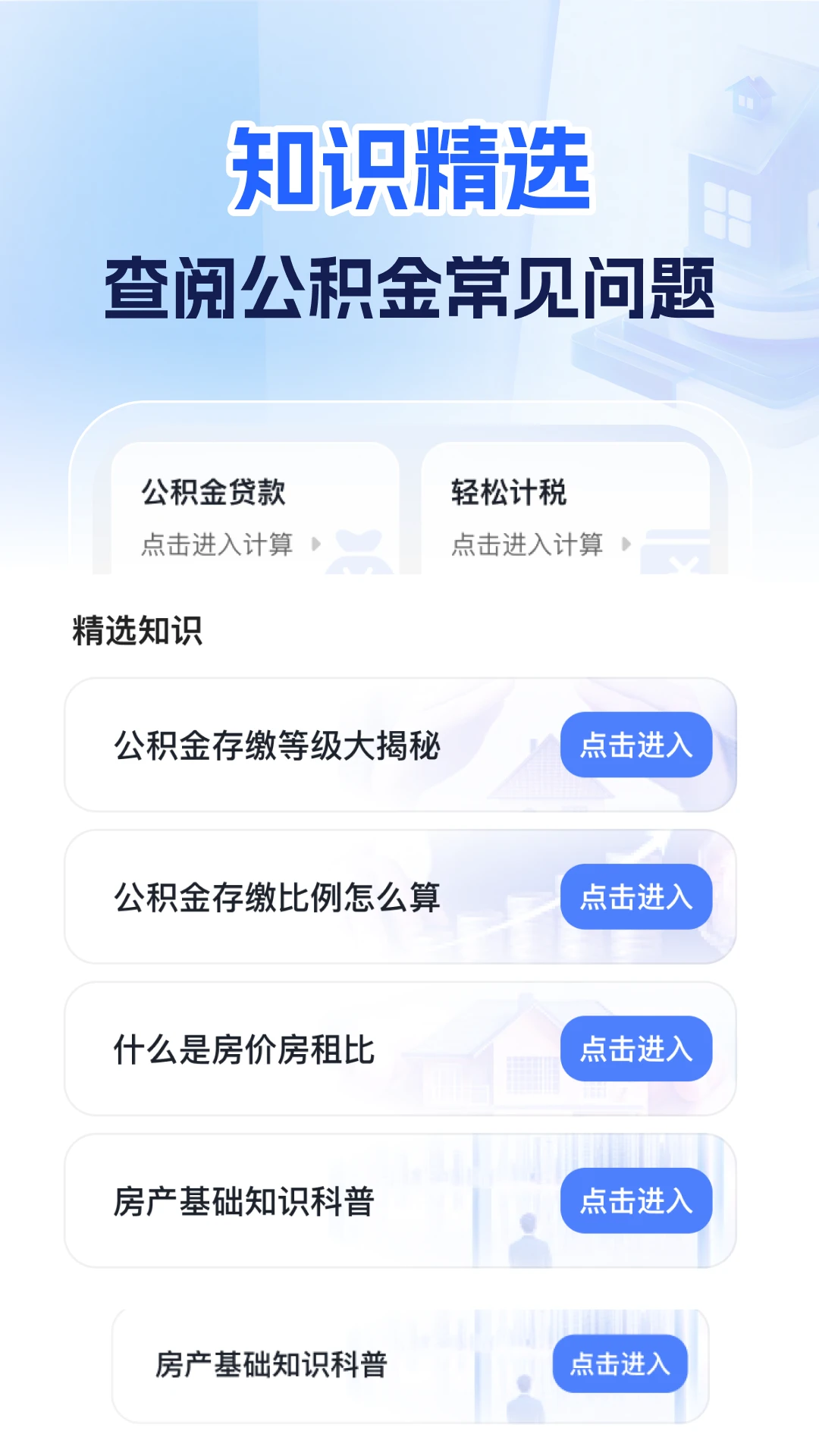 精选公积金相关知识库,方便用户快速查询政策与常见问题。