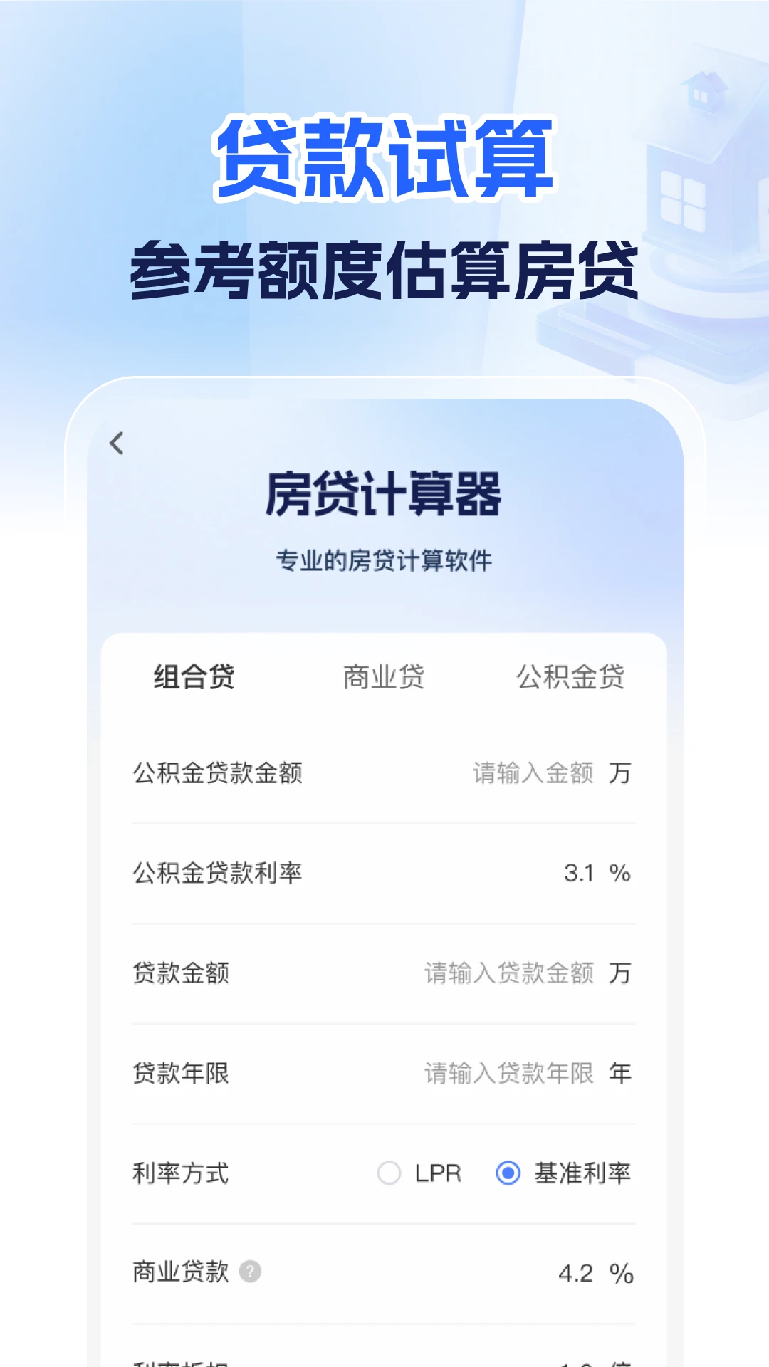 支持公积金贷款额度试算功能,让用户提前预估可贷金额。