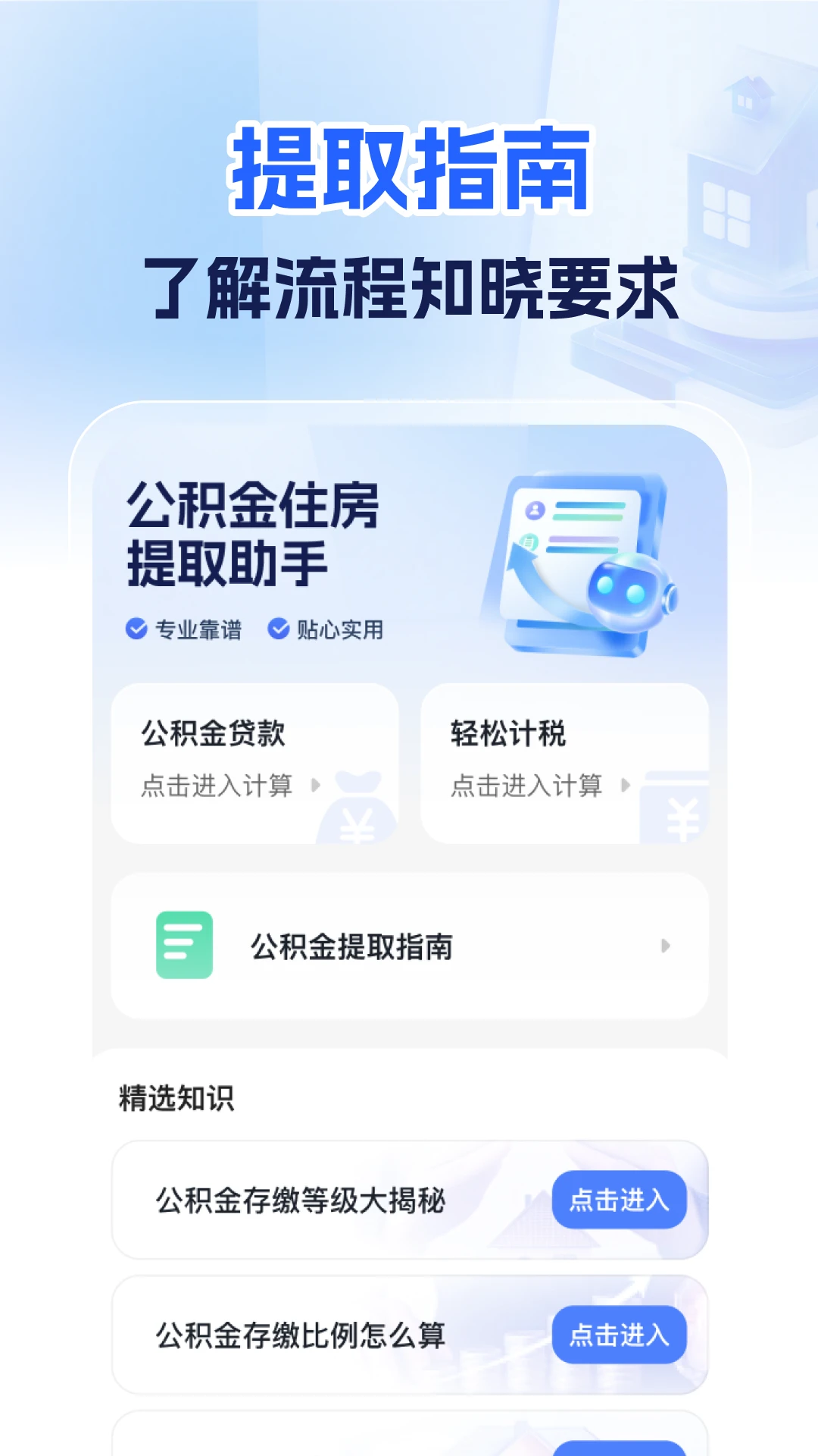 提供公积金住房提取流程指南,帮助您了解相关步骤和要求。支持公积金贷款额度试算与个人税务参考计算。精选公积金相关知识,方便您快速查阅。基础功能设计,旨在为您办理公积金相关事务提供信息参考。