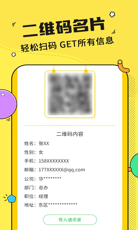 名片二维码:快速生成电子名片二维码,方便商务人士快速交换联系方式。